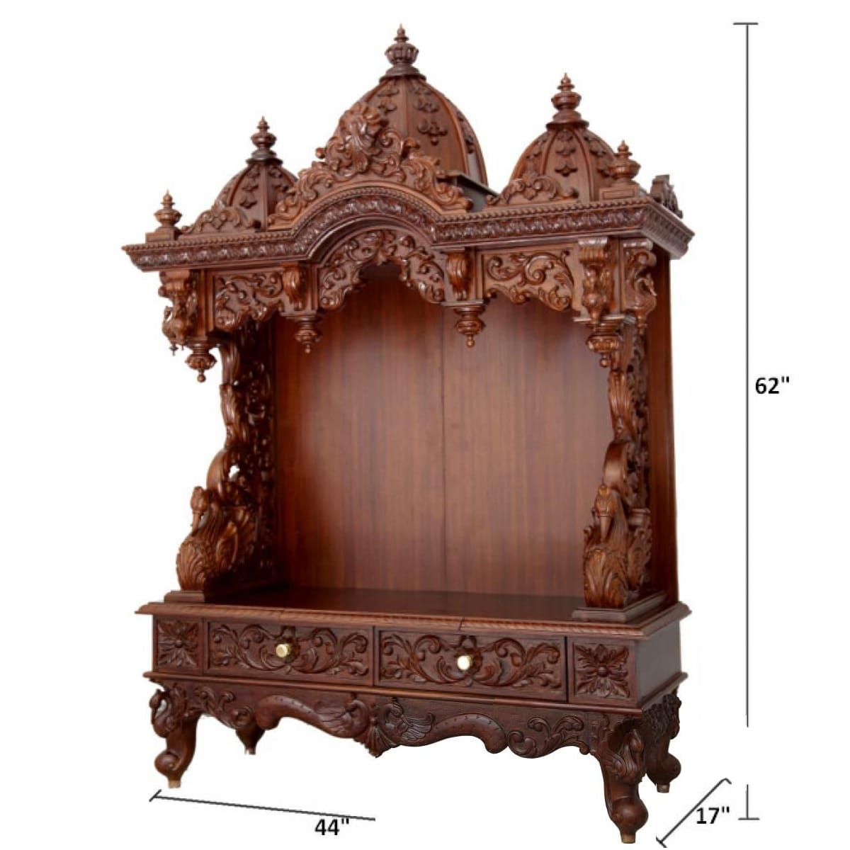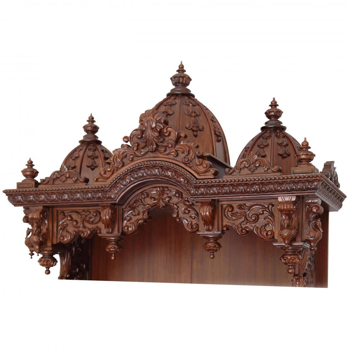 Beautifully designed Teak ( saagwan/ Saag ) with doors and traditional carving. As all know, teak is one of the best woods for home furniture and also known for detailed and fine carving possibilities. Because of this properties we use teak wood in most of the temples we manufacture. This Mandir made for home or office are inspired by the designs and vastu of the original hindu mandirs.