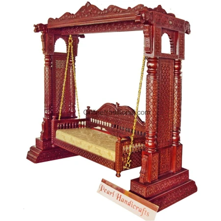Fine Jaali Pillar Teak Swing | Carved Wooden Swing | Wooden Jhoola