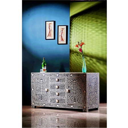 The Mother of pearl furniture is made in the magical region of Rajasthan India, using bone and mother of pearl shell from Naturally dead Camel and cow. NO any animal harmed for the raw material.