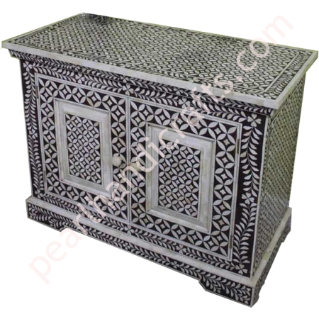 The bone inlay or Mother of pearl night stands and chest of drawers are made in the magical region of Rajasthan India, using bone and mother of pearl shell from Naturally dead Camel and cow. NO any animal harmed for the raw material.