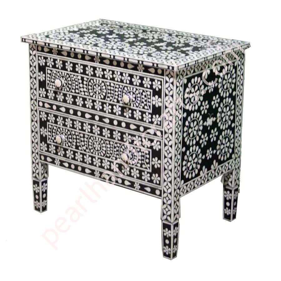 The bone inlay or Mother of pearl furniture is made in the magical region of Rajasthan India, using bone and mother of pearl shell from Naturally dead Camel and cow. NO any animal harmed for the raw material.