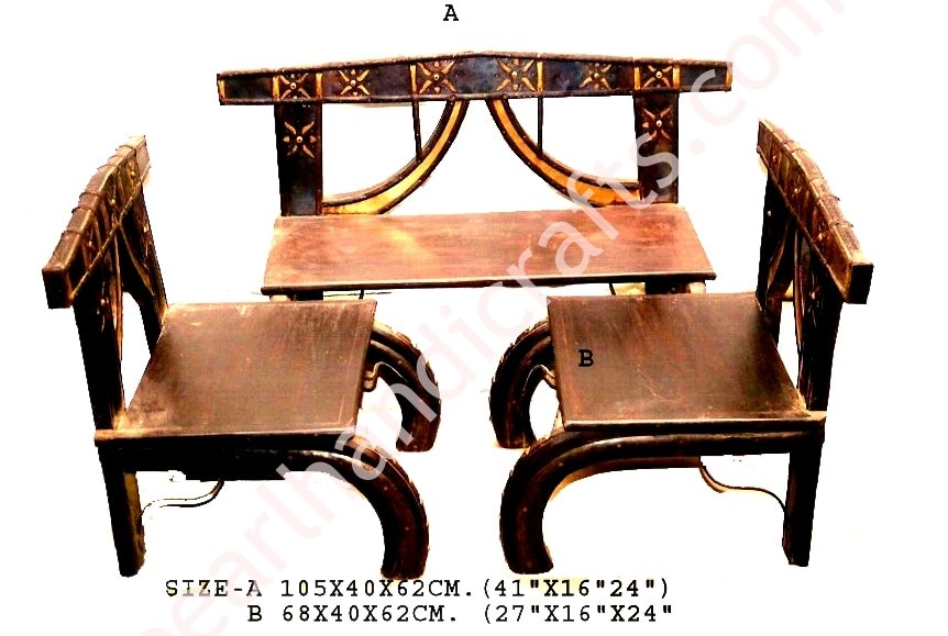 Many design of cart sofa set that are beautifully designed with central table. These all sofa sets are made of solid wood with very artistically fitted iron strips and brass sheet makes it very durable and gives a real Rajasthani traditional look. We have full furniture collection under this category of handicrafts like wardrobes, tables, book selves, small seats, night stands, side tables and more.The iron strips make the furniture very heavy, strong and weather proof up to a extend. Due to its strength, weight and looking nowadays cart furniture is in demand. You can use this furniture range as outdoor furniture. We are a leading manufacturer and exporter of cart furniture.