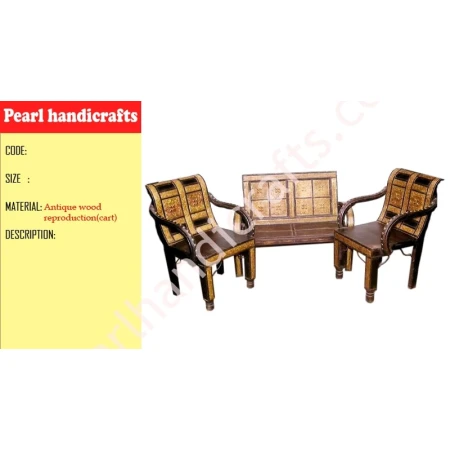 A Sofa set with one 3 seating and 2 single seats with very artistic designed back rest make it very comfortable and attractive. This set is made of solid wood with very artistically fitted iron strips and brass sheet makes it very durable and gives a real Rajasthani traditional look. The iron strips make the furniture very heavy, strong and weather proof up to a extend. Due to its strength, weight and looking nowadays cart furniture is in demand. You can use this furniture range as outdoor furniture. We are a leading manufacturer and exporter of cart furniture.