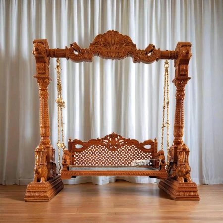 This Beautiful Indoor Wooden Indian Swing made of fine quality teak wood with deep carving. Polished with quality polish material like spirit and lacquer with final coat of melamine for smooth touch. These all gives it strength, royal look, durability and weather resistant. It is suitable for both indoor and outdoor. It adds to your home gives you an elegant relaxing time.