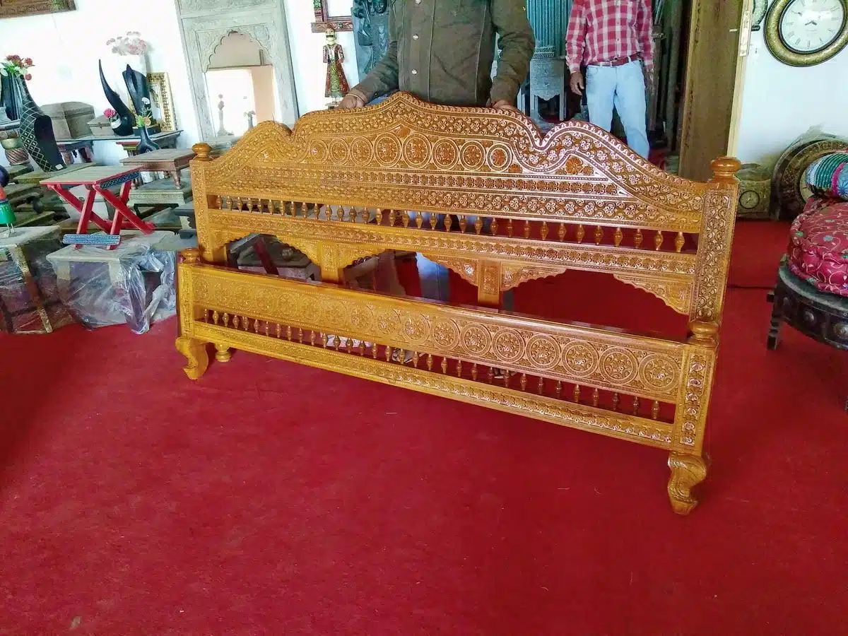 Fitting: This Bed is in 4 or 5 detachable parts for easy and safe transportation. You can easily fix it with help of 2 adults only. Indian bed provided 2 side wooden planks to support both head board and foot board. The mattress area is supported by either small solid wood blogs or Wooden Ply. The side planks get fitted to the both boards by thick but smooth bolts.