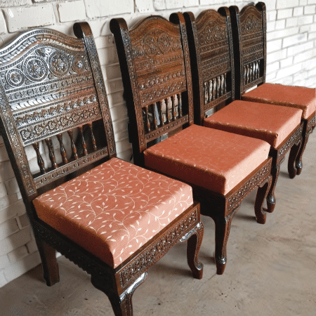 Chair is one of its kind accent piece which defines the entire space. The carving is done in solid teak wood. The chair is designed and hand carved by experienced artisan carpenters of pearl handicrafts with deep detailed fine carving and sleek design to add the wow factor to the entire design.