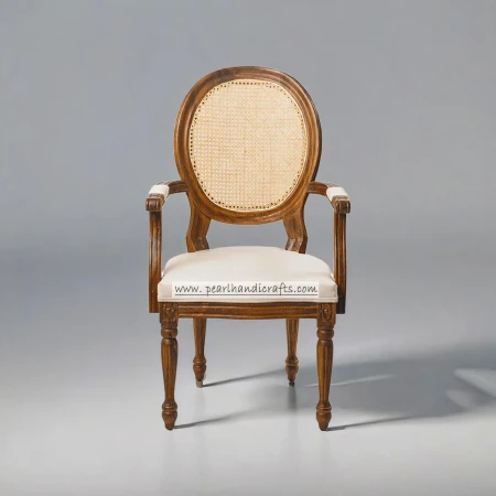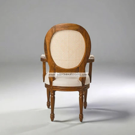 Explore your seating experience with our Imperial high arm rattan chair Chair, a fusion of traditional craftsmanship and contemporary design. Handcrafted with chastity this chair made of Teak frame, known for its durability and rich, natural grain. Finished with very high quality non toxic material that makes it water and weather resistant up to a level. The rattan cane weaving highlights the wood’s intrinsic beauty, vintage charm, making it a versatile addition to any décor. Higher arms adding a uniqueness and extra comfort to the chair.