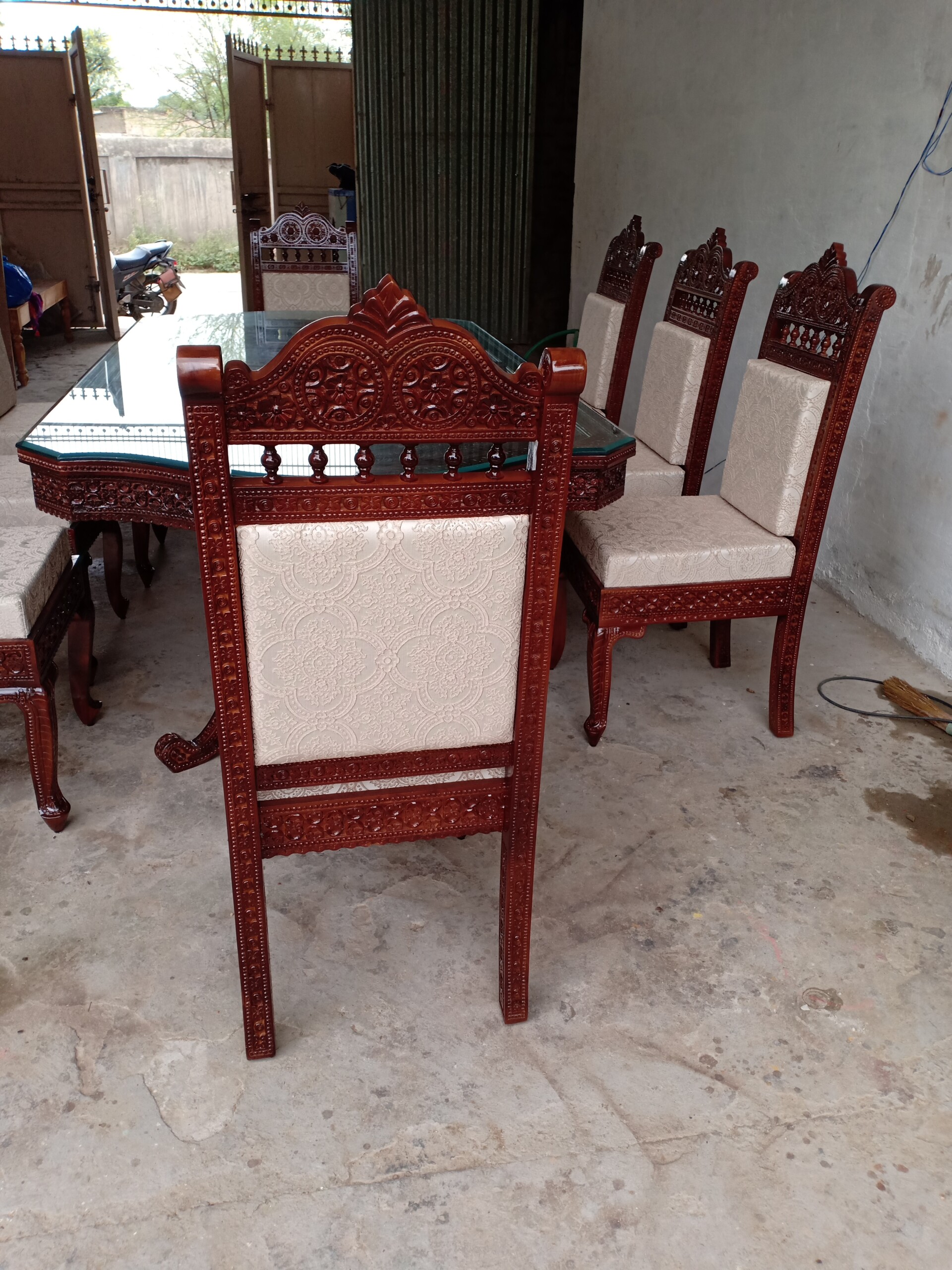 Explore your seating experience with our fine carved Jaisalmer dining chair , a fusion of traditional craftsmanship and contemporary design. Handcrafted with chastity this chair made of Teak frame and teak back, known for its durability and rich, natural grain. Finished with very high quality non toxic material that makes it water and weather resistant up to a level. The fine deep flower carving highlights the wood’s intrinsic beauty, vintage charm, making it a versatile addition to any décor. 4 inch foam add extra comfort to the chair.