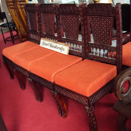 Explore your seating experience with our fine carved Jaisalmer dining chair , a fusion of traditional craftsmanship and contemporary design. Handcrafted with chastity this chair made of Teak frame and teak back, known for its durability and rich, natural grain. Finished with very high quality non toxic material that makes it water and weather resistant up to a level. The fine deep flower carving highlights the wood’s intrinsic beauty, vintage charm, making it a versatile addition to any décor. 4 inch foam add extra comfort to the chair.
