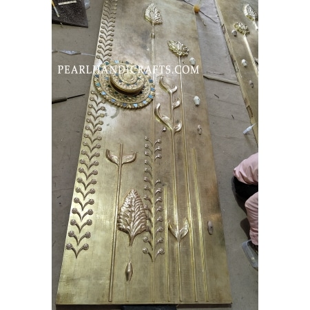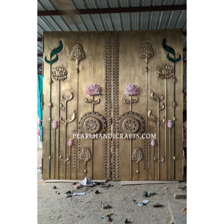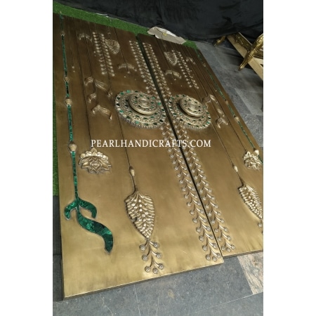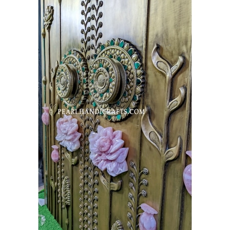 Quartz lotus brass teak door