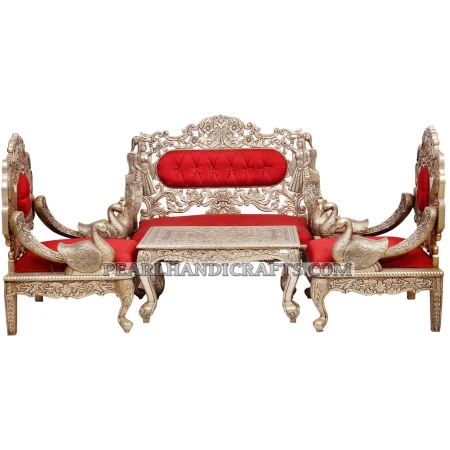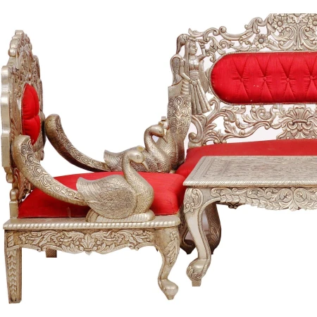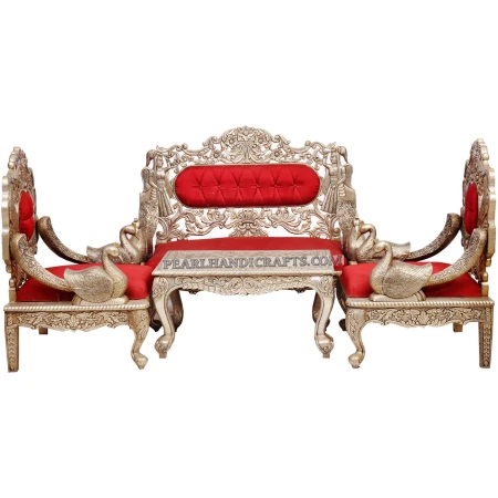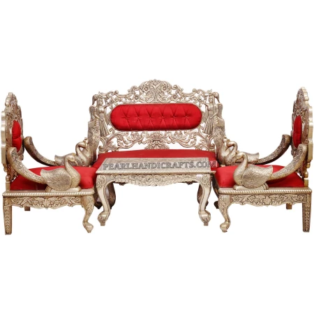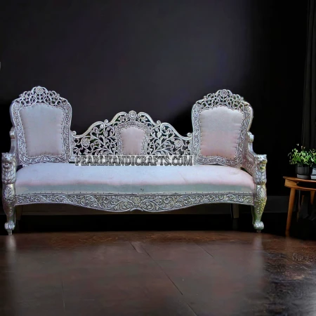 This design of sofa set can be made with either Silver sheet mounted or white metal ( EPNS) or Brass mounted over carved wood.