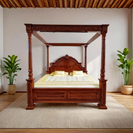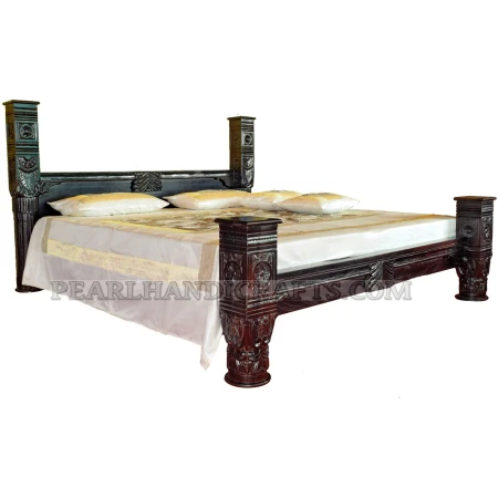 All the beds are made of Solid teak wood or rose wood only and polished with quality polish material like spirit and lacquer with final coat of melamine/ PU for smooth touch and make it weather proof . These all gives it strength, royal look, durability and weather resistant. It adds to your home gives you an elegant relaxing time.