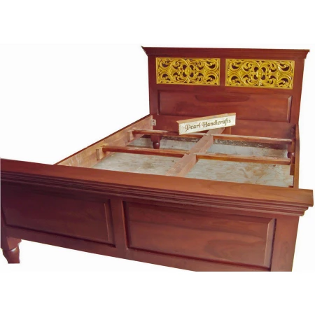 Fitting: This Bed is in 4 or 5 detachable parts for easy and safe transportation. You can easily fix it with help of 2 adults only. Indian bed provided 2 side wooden planks to support both head board and foot board. The mattress area is supported by either small solid wood blogs or Wooden Ply. The side planks get fitted to the both boards by thick but smooth bolts.