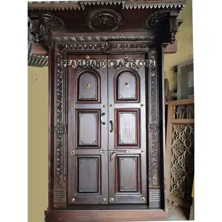 You may also have temple room in your home or the space especially meant for the deity or gods. You can always prefer beautiful hand carved wooden main doors or metal or silver mounted doors for your temple room. The temple doors with carved gods or goddesses or any devotional symbols can add a mesmerizing look to the temple room in your home.