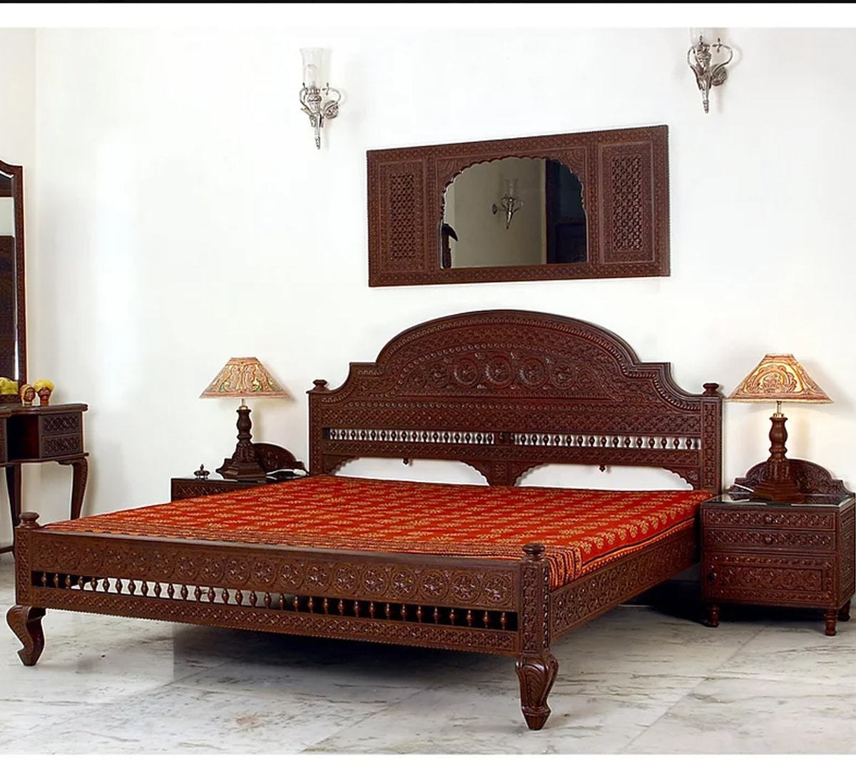 This teak wood bed set is a splendid example of exquisite craftsmanship.