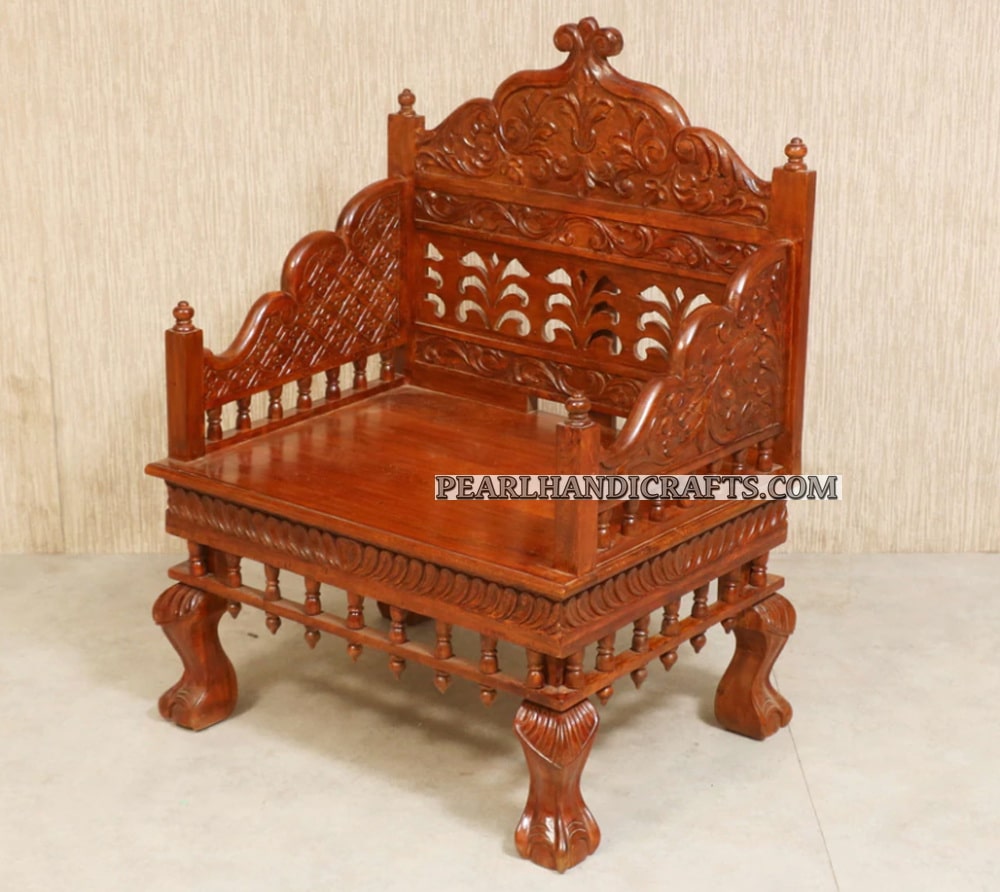 Rajasthani pattern solid wood sofa set /bench with really beautiful floral hand carving and arcs.