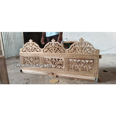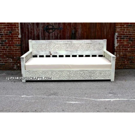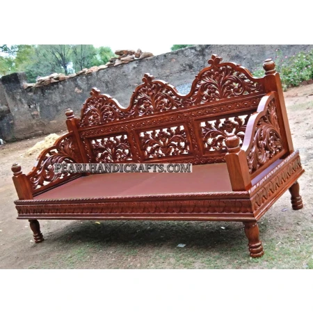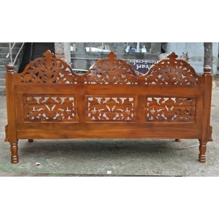 Rajasthani pattern solid wood sofa set /bench with really beautiful floral hand carving and arcs.